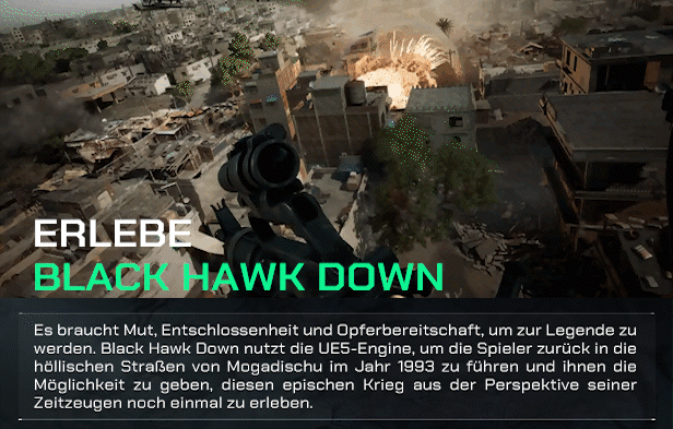 - Black Hawk Down: Schlüpfe in dieser Neuauflage der klassischen Kampagnenserie, die auf dem fesselnden Film von 2001 basiert, in die Rolle der legendären Kämpfer der Delta Force.